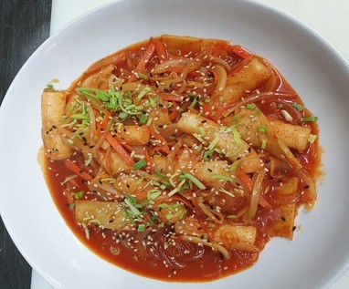 El kimbab es un plato de origen coreano elaborado a base de arroz blanco cocido y otros ingredientes enrollados en alga prensada. Puede venir acompañado de danmuji o kimchi. Este plato es uno de los más reconocidos de la gastronomía coreana.